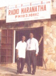 John Egbe with the station manager of Radio Maranatha in Cotonou, Benin, West Africa. Our English and French broadcasts are aired weekly on this station.
